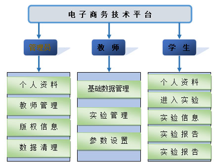電子商務(wu)技(ji)術平(ping)(ping)臺(tai)分為(wei)管(guan)理員、教師和(he)學(xue)生三個角(jiao)(jiao)色,每個角(jiao)(jiao)色都(dou)有(you)(you)自己特有(you)(you)的功能。電子商務(wu)技(ji)術平(ping)(ping)臺(tai)包括(kuo)了數據(ju)管(guan)理、WEB服務(wu)器(qi)安裝(zhuang)與(yu)配(pei)置、業務(wu)流程(cheng)分析(xi)設(she)計(ji)、局(ju)域網搭建(jian)、客戶與(yu)服務(wu)端應用開發、網站構(gou)架設(she)計(ji)、Web Service應用 、數據(ju)建(jian)模、B2B平(ping)(ping)臺(tai)會(hui)員系統(tong)設(she)計(ji)和(he)網站性(xing)能分析(xi)十個實驗課程(cheng)。讓(rang)學(xue)生通過(guo)實驗的形式(shi)來鞏固知(zhi)(zhi)識(shi)、理解(jie)知(zhi)(zhi)識(shi)和(he)綜合運用知(zhi)(zhi)識(shi),教師也可以擺脫傳統(tong)的教學(xue)方法,把枯燥的知(zhi)(zhi)識(shi)同實踐相(xiang)結合,還(huan)可以通過(guo)學(xue)生的操(cao)作對學(xue)生的知(zhi)(zhi)識(shi)能力(li)進行考評,并(bing)可以此為(wei)依據(ju)調整(zheng)教學(xue)方式(shi)方法。