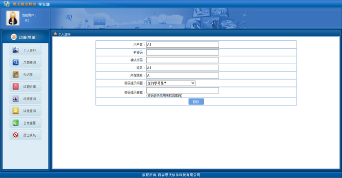 思沃考試系(xi)統是基于B/S模式架構的(de)一款通(tong)用考試系(xi)統,滿足(zu)學校各種形(xing)式的(de)考試、競賽(sai)、練習(xi),完全(quan)實現了(le)考試工作的(de)網絡化(hua)、無紙化(hua)、自動化(hua),極大的(de)減輕了(le)教(jiao)師(shi)的(de)工作量,同時也大大降低(di)了(le)閱卷(juan)的(de)錯(cuo)誤率。