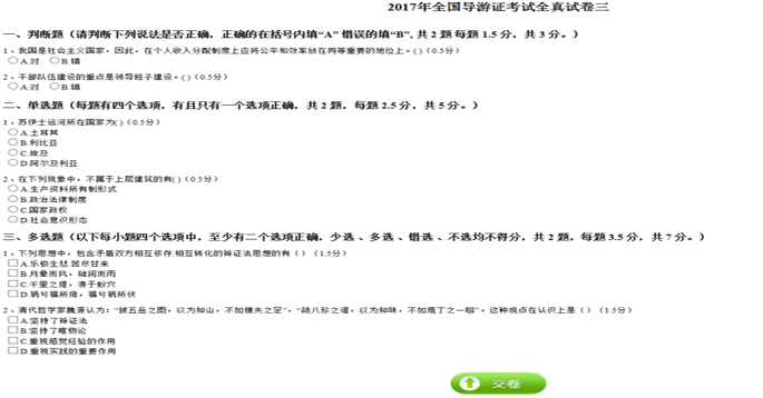 提供對(dui)試卷存在的客觀題(ti)(如判斷(duan)題(ti)、單選(xuan)(xuan)題(ti)、多(duo)選(xuan)(xuan)題(ti)等),系(xi)統自動評(ping)分(fen)。